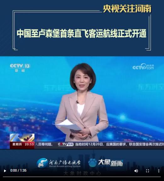 【央視關(guān)注河南】中國至盧森堡首條直飛客運航線正式開通