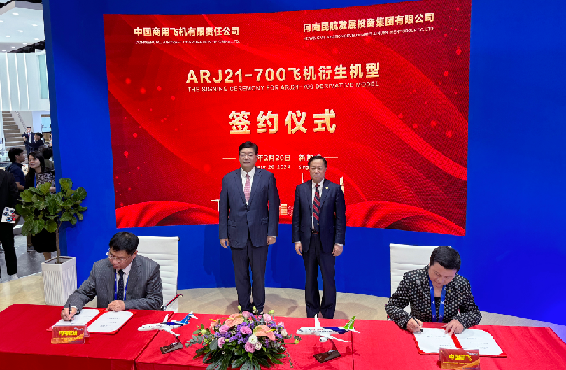 2月20日,在中國商用飛機(jī)有限責(zé)任公司(以下簡稱中國商飛)黨委書記、董事長賀東風(fēng)和河南航投集團(tuán)黨委書記、董事長張明超的共同見證下,河南航投集團(tuán)子公司河南航投航空設(shè)備租賃有限公司(以下簡稱航投租賃)與中國商飛在新加坡航展首日簽署了《飛機(jī)購買意向書》(以下簡稱意向書),雙方就國產(chǎn)ARJ21-700衍生機(jī)型達(dá)成購買意向。