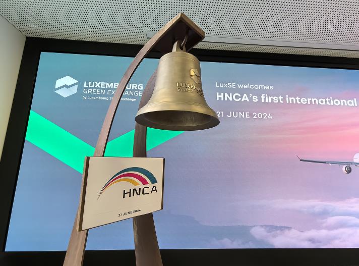 當(dāng)?shù)貢r(shí)間6月21日上午,中豫航空集團(tuán)以河南航投為主體發(fā)行的3年期人民幣境外債券上市儀式在盧森堡證券交易所舉行。這是中國企業(yè)在歐洲發(fā)行的首只支持可持續(xù)航空燃料(SAF)的綠色債券,也是河南企業(yè)發(fā)行的首只離岸人民幣綠色債券,鄭盧“空中絲路”資金融通實(shí)現(xiàn)新突破。