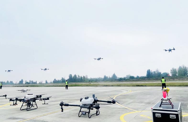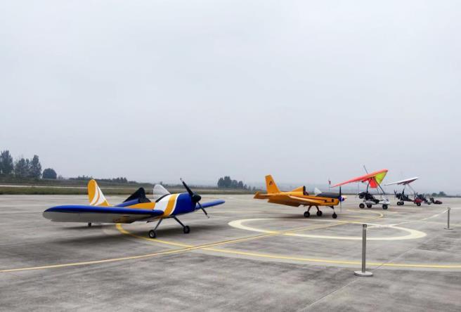 9月29日,登封少林機(jī)場(chǎng)正式開航。在當(dāng)天舉行的開航儀式中,動(dòng)態(tài)展示環(huán)節(jié)分別進(jìn)行了輕型運(yùn)動(dòng)類飛機(jī)通場(chǎng)飛行訓(xùn)練、登封-上街轉(zhuǎn)場(chǎng)飛行訓(xùn)練、無人機(jī)物流投送演示、無人機(jī)植保演示等。靜態(tài)展示環(huán)節(jié)中,共有4架固定翼飛機(jī)、2架直升機(jī)、20余架無人機(jī)及多架三角翼、動(dòng)力傘、旋翼機(jī)進(jìn)行了展示。