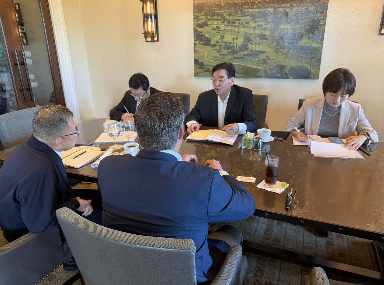 11月22日,代表團(tuán)一行在洛杉磯與Wallace銷(xiāo)售副總裁Bryan會(huì)談,美國(guó)康尼航空相關(guān)業(yè)務(wù)負(fù)責(zé)人一同參加。張明超介紹了中豫航空集團(tuán)簡(jiǎn)況和鄭州機(jī)場(chǎng)當(dāng)前業(yè)務(wù)布局。他表示,在Wallace的促成下,美國(guó)康尼航空今年在鄭貨運(yùn)量增幅超過(guò)50%,與鄭州機(jī)場(chǎng)貨量同步達(dá)到歷史峰值,物流服務(wù)集成商、航空公司、樞紐機(jī)場(chǎng)三方資源疊加,實(shí)現(xiàn)了優(yōu)勢(shì)互補(bǔ)和共贏發(fā)展,希望Wallace和美國(guó)康尼航空進(jìn)一步拓展在鄭業(yè)務(wù),加強(qiáng)與中原龍浩航空等本土貨運(yùn)航空公司的合作,中豫航空集團(tuán)將一如既往給予支持。Bryan表示,今年5月,Wallace與美國(guó)康尼航空開(kāi)通了鄭州機(jī)場(chǎng)首條直飛亞特蘭大/達(dá)拉斯的國(guó)際定期貨運(yùn)航線并順利運(yùn)營(yíng)至今,為各方發(fā)展提供了支持。目前,鄭州機(jī)場(chǎng)已經(jīng)成為美國(guó)康尼航空在中國(guó)大陸投放運(yùn)力最多的機(jī)場(chǎng),Wallace希望能繼續(xù)與中豫航空集團(tuán)保持良好的合作關(guān)系,并將根據(jù)市場(chǎng)需求適時(shí)增加在鄭運(yùn)力。