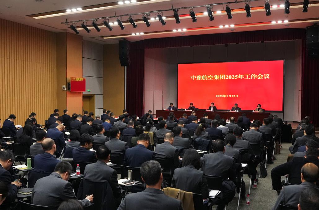 張明超指出,2024年,中豫航空集團堅持以習近平新時代中國特色社會主義思想為指導,深入學習貫徹黨的二十大和二十屆二中、三中全會精神,全面貫徹落實省委、省政府決策部署,統(tǒng)籌推進高質量發(fā)展和高水平安全,“空中絲綢之路”建設、樞紐建設、航空產業(yè)、集團效益均取得明顯成效。一是客貨運發(fā)展進階提質。鄭州機場全年旅客吞吐量2851.1萬人次、同比增長12.4%;全年貨郵吞吐量82.51萬噸、同比增長35.74%。盧森堡貨航在鄭貨運量14.08萬噸、同比增長38.58%,中原龍浩航空在鄭貨運量13.53萬噸、同比增長192.61%,連續(xù)兩年“倍增”。鄭州機場新引進7家貨運航司、榮獲亞太機場“卓越服務”獎,服務保障創(chuàng)新提升,樞紐功能更加完善。二是“空中絲路”升級拓維。成功推動和保障第二屆鄭州—盧森堡“空中絲綢之路”國際合作論壇在盧森堡舉辦、第二屆中歐地理標志論壇在鄭州舉辦,開展首期“空中絲綢之路”國際交換生項目,推動共建鄭州—吉隆坡“雙樞紐”,加快“雙樞紐”全球布局。三是低空經濟蓬勃起勢。完成中國飛龍增資重組,加快在豫業(yè)務布局,持續(xù)鞏固提升應急救援、飛行培訓、警用航空等行業(yè)優(yōu)勢。完成我省無人機物流配送“首飛”,做優(yōu)做大“無人機+智慧農業(yè)”“無人機+巡查巡檢”應用場景,登封少林機場開航,全省骨干通用機場一體化運營管理加快推進。四是航空產業(yè)延鏈成群。航空仿真產業(yè)持續(xù)壯大,多型號飛行訓練器銷往國際市場,仿真訓練裝備先后中標多個國內項目,模擬機經營性租賃、跨境飛機租賃業(yè)務實現新突破,與中國商飛、法國賽峰集團等國內外龍頭企業(yè)深化合作,進一步集聚優(yōu)質航空資源。五是改革創(chuàng)新成效顯著。集團重組實現平穩(wěn)過渡和良好開局。創(chuàng)新驅動勢頭強勁,國家級重點科研項目實現突破,省智慧機場建設運行工程技術研究中心獲省科技廳批復,空陸聯運“一單制”被交通運輸部評為交通強國專項試點典型案例。綠色化轉型深入推進,發(fā)行河南企業(yè)首支離岸人民幣綠色債券,啟動鄭州機場二期光伏發(fā)電項目、建設航空器噪聲監(jiān)測系統(tǒng),鄭州機場成為國內首批可持續(xù)航空燃料加注試點。六是安全發(fā)展更加穩(wěn)固。深入推進安全生產治本攻堅三年行動,航空運輸和機場運行安全平穩(wěn);航班放行正常率90.47%,靠橋率95.83%、位居行業(yè)領先水平。持續(xù)做好制度立改廢并,合規(guī)管理水平進一步提高。七是黨建引領強根鑄魂。深入學習貫徹黨的二十屆三中全會精神,召開第一次黨代會,發(fā)揮黨委把關定向作用。高標準開展黨紀學習教育,深入推進群眾身邊不正之風和腐敗問題集中整治。嚴格落實意識形態(tài)工作責任制,宣傳、群團工作不斷出彩。