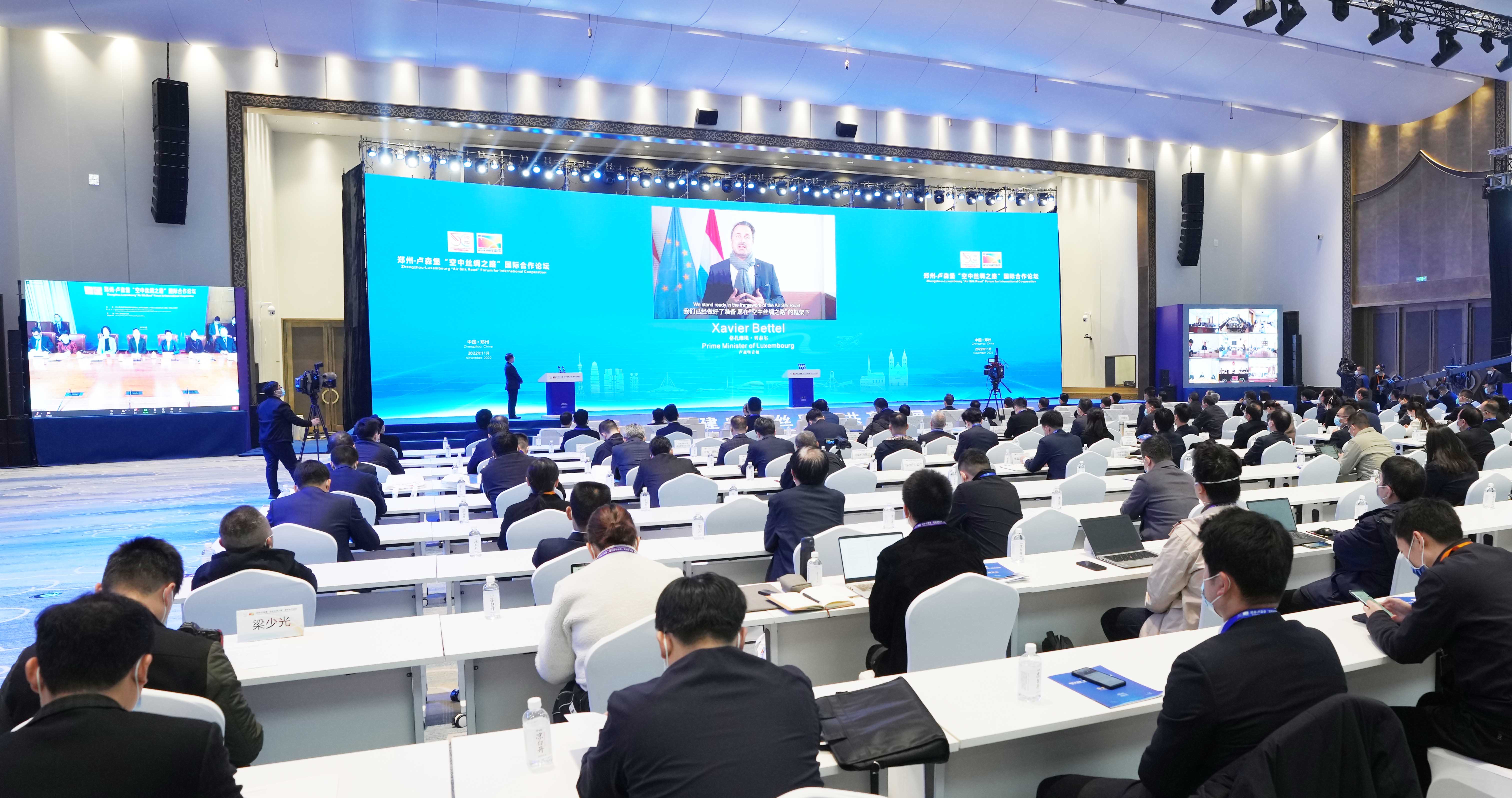 11月16日,以“做大做強(qiáng)中盧貨運(yùn)航線‘空中絲路’”為主題的鄭州-盧森堡“空中絲綢之路”國際合作論壇在鄭州開幕。中央政治局委員、國家發(fā)展改革委主任何立峰,盧森堡首相格扎維埃·貝泰爾視頻致辭,盧森堡副首相兼交通和公共工程大臣弗朗索瓦·鮑施發(fā)來賀信。省委書記樓陽生致辭并宣布論壇開幕,省長王凱主持。