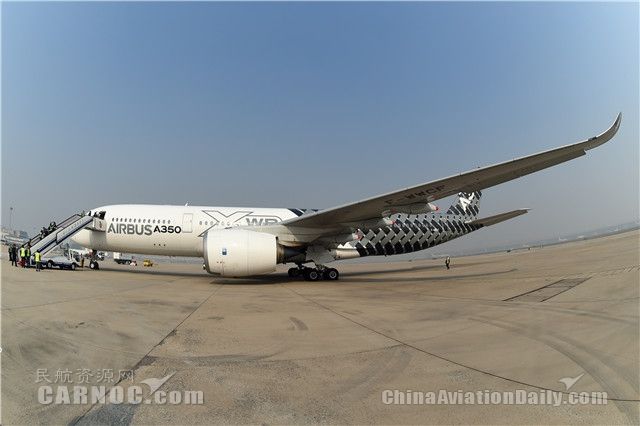 11月2日一架身披碳纖維特殊涂裝的空客A350-900測(cè)試飛機(jī)飛抵北京首都國(guó)際機(jī)場(chǎng),并在11月3日進(jìn)行展示。A350是目前世界上最先進(jìn)的遠(yuǎn)程寬體飛機(jī)。北京是空客A350中國(guó)巡演活動(dòng)的第三站,之前這架生產(chǎn)序列號(hào)為MSN2的測(cè)試飛機(jī)已經(jīng)訪問(wèn)了珠海和??冢酉聛?lái)它還將飛抵上海、廣州和成都進(jìn)行靜態(tài)和飛行展示。