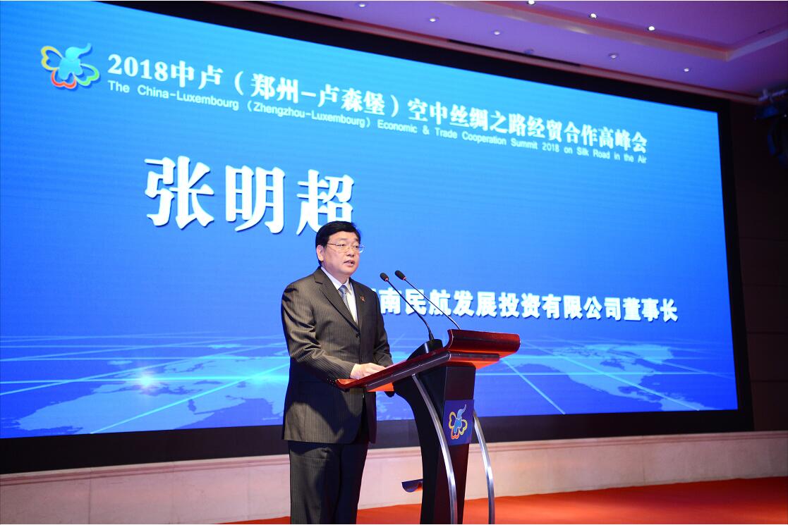 4月17日,2018中盧(鄭州—盧森堡)“空中絲綢之路”經(jīng)貿(mào)合作高峰會(huì)在鄭州舉行,來(lái)自河南和盧森堡兩地的政府官員、企業(yè)代表、專家學(xué)者碰撞思想火花,凝聚智慧力量。河南航投黨委書(shū)記、董事長(zhǎng)張明超出席峰會(huì)并發(fā)言。