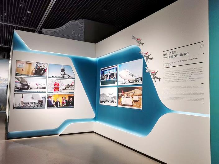 這一主題展板上,精選了10張圖片記錄豫盧共建“空中絲路”的關(guān)鍵事件。既有2014年河南航投與盧森堡貨航在鄭州簽署股權(quán)合作協(xié)議、“鄭州號(hào)”巨無(wú)霸貨機(jī)首次抵鄭的起始節(jié)點(diǎn);也有這條絲路承運(yùn)河南省向盧方捐贈(zèng)的抗疫物資、鄭盧直飛客航首批旅客抵達(dá)的溫暖瞬間;還有盧森堡貨航在鄭州加注可持續(xù)航空燃料、鄭盧航線貨運(yùn)量突破100萬(wàn)噸的喜慶時(shí)刻,精彩講述豫盧雙方在“一帶一路”框架下相融互促,從硬聯(lián)通、軟聯(lián)通到心聯(lián)通的生動(dòng)實(shí)踐。